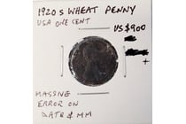 1920S LINCOLN " WHEAT " PENNY , USA ERROR COIN -...