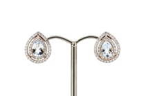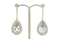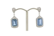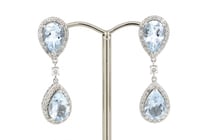 14K WHITE GOLD, AQUAMARINE AND DIAMOND, HALO DROP...