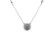 14K WHITE GOLD AND DIAMOND, HALO NECKLACE. THE...