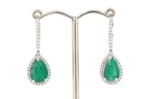 14K WHITE GOLD, EMERALD AND DIAMOND, HALO DROP...