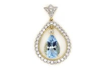14K YELLOW GOLD, AQUAMARINE AND DIAMOND,...