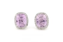 14K WHITE GOLD, KUNZITE AND DIAMOND, HALO STUD...
