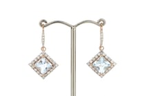14K ROSE GOLD, AQUAMARINE AND DIAMOND, HALO DROP...
