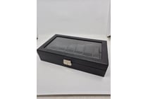 WATCH BOX, BLACK WITH GLASS TOP, FELT UNDERSIDE,...