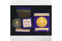 BRADMAN 5 DOLLAR BI METAL COIN ON CARD OF ISSUE...