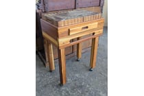 Bench, wooden butcher's block table on casters...