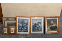 Artwork, 11 pieces includes framed vintage style...