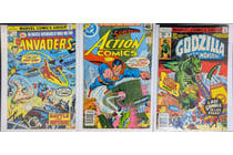 THREE COMIC BOOKS INCLUDING GODZILLA, SUPERMAN...
