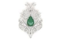14K WHITE GOLD, EMERALD AND DIAMOND, ORNATE...