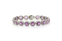 14K WHITE GOLD, PINK SAPPHIRE AND DIAMOND, HALO...