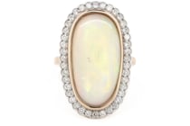 14K ROSE GOLD, SOLID OPAL AND DIAMOND, HALO RING....