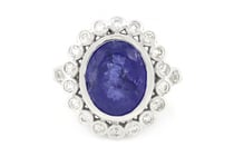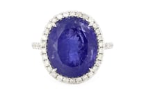 14K WHITE GOLD, TANZANITE AND DIAMOND, HALO DROP...