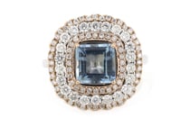 14K ROSE GOLD, MORGANITE AND DIAMOND, HALO...