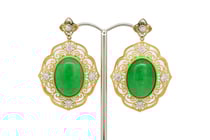 14K YELLOW GOLD, JADE AND DIAMOND, DROP EARRINGS....