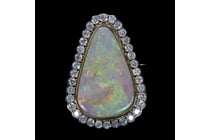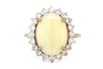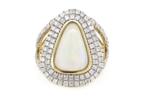 14K YELLOW GOLD, NATURAL WHITE OPAL AND DIAMOND,...