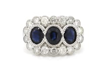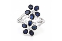 10K WHITE GOLD, BLUE SAPPHIRE AND DIAMOND,...