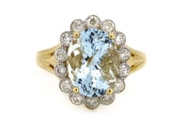 14K WHITE GOLD, HELIODOR AND DIAMOND, HALO...