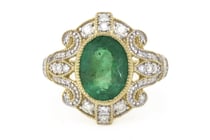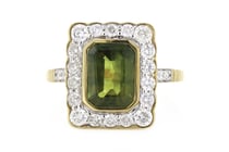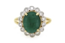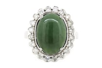 10K YELLOW GOLD, JADE AND DIAMOND, HALO RING....