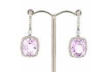 14K WHITE GOLD, 15.15CT KUNZITE AND DIAMOND, HALO...