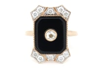 14K YELLOW GOLD, ONYX AND DIAMOND, ART DECO...