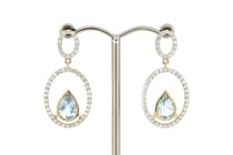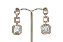 14K ROSE/WHITE GOLD, AQUAMARINE AND DIAMOND, DROP...