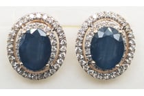 14CT ROSE GOLD, BLUE SAPPHIRE AND DIAMOND, DOUBLE...