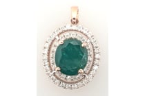 14K ROSE GOLD, EMERALD AND DIAMOND, DOUBLE HALO...