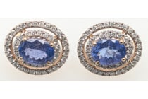14K YELLOW GOLD, TANZANITE AND DIAMOND, DOUBLE...