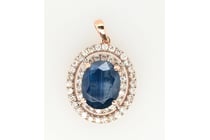 14K ROSE GOLD, BLUE SAPPHIRE AND DIAMOND, HALO...