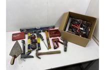 Assorted tools, includes hammers, trowel,...