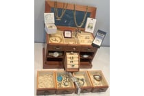 MUSICAL TIMBER JEWELLERY BOX WITH ASSORTED...