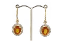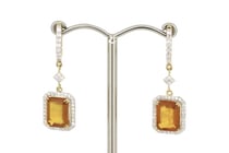 14K YELLOW GOLD, ORANGE SAPPHIRE AND DIAMOND,...