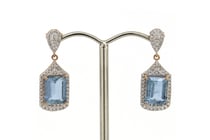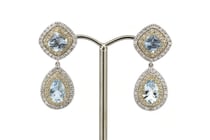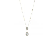 14K WHITE GOLD, AQUAMARINE AND DIAMOND, DROP...