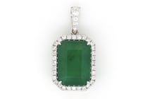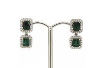 14K WHITE GOLD, EMERALD AND DIAMOND, DOUBLE HALO...