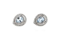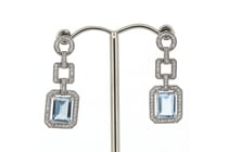 14K WHITE GOLD, AQUAMARINE AND DIAMOND, DOUBLE...