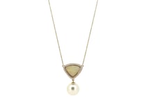 14K YELLOW GOLD, WHITE CULTURED SOUTH SEA PEARL,...