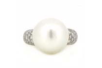 14K WHITE GOLD, WHITE CULTURED SOUTH SEA PEARL...