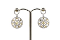 14K WHITE GOLD, BLACK DIAMOND AND DIAMOND, DROP...