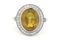 14K WHITE GOLD, YELLOW SAPPHIRE AND DIAMOND, HALO...