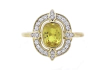 14K YELLOW GOLD, GREEN SAPPHIRE AND DIAMOND, HALO...