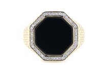 14K YELLOW GOLD, BLACK ONYX AND DIAMOND, GENTS...