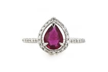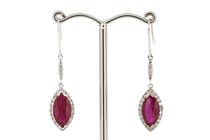 14K WHITE GOLD, RUBY AND DIAMOND, HALO DROP...