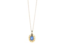 9K ROSE GOLD AND BLUE STONE, PENDANT NECKLACE....