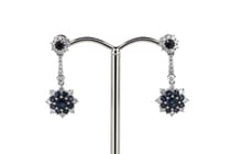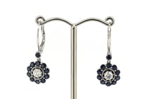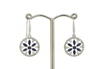 14K WHITE GOLD, BLUE SAPPHIRE AND DIAMOND, FLORAL...