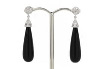 14K WHITE GOLD, ONYX AND DIAMOND, DROP EARRINGS....