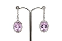 14K WHITE GOLD, KUNZITE AND DIAMOND, HALO DROP...