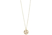 9K YELLOW GOLD AND RUBY, FILAGREE PENDANT...