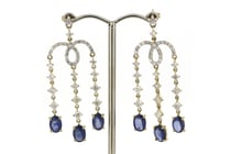 14K WHITE GOLD, EMERALD AND DIAMOND, TRIPLE DROP...
