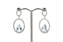 14K WHITE GOLD, AQUAMARINE AND DIAMOND, DOUBLE...