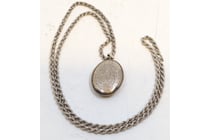 9CT WHITE GOLD OVAL LOCKET WITH SILVER THICK ROPE...